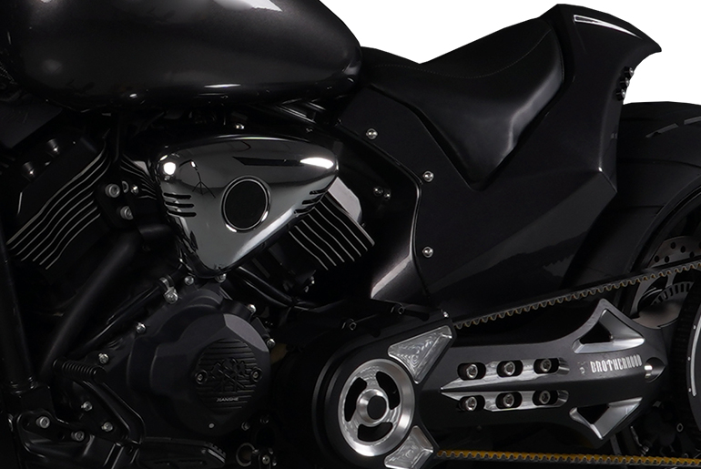| V型双缸800cc发动机 水滴形平口油箱,大容积20升,续航能力强 真正野性霸气的巡航机车 360mm超大宽胎 合理舒适的人机工程设计 |